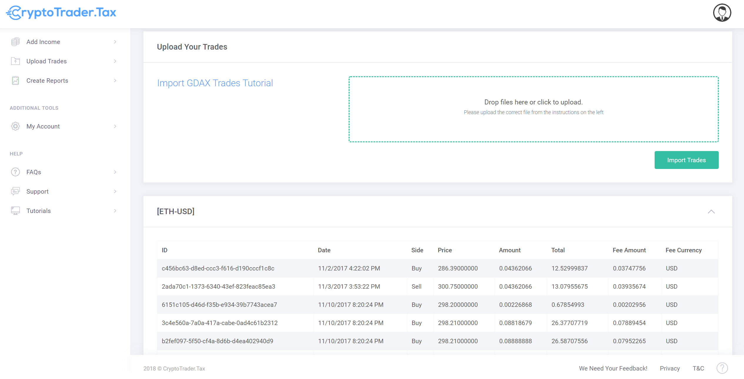 CryptoTrader.Tax is a tool to help make the task of calculating capital gains reporting taxes easier for crypto traders. Just upload your trade history from any exchange to get a detailed capital gains report for your taxes.