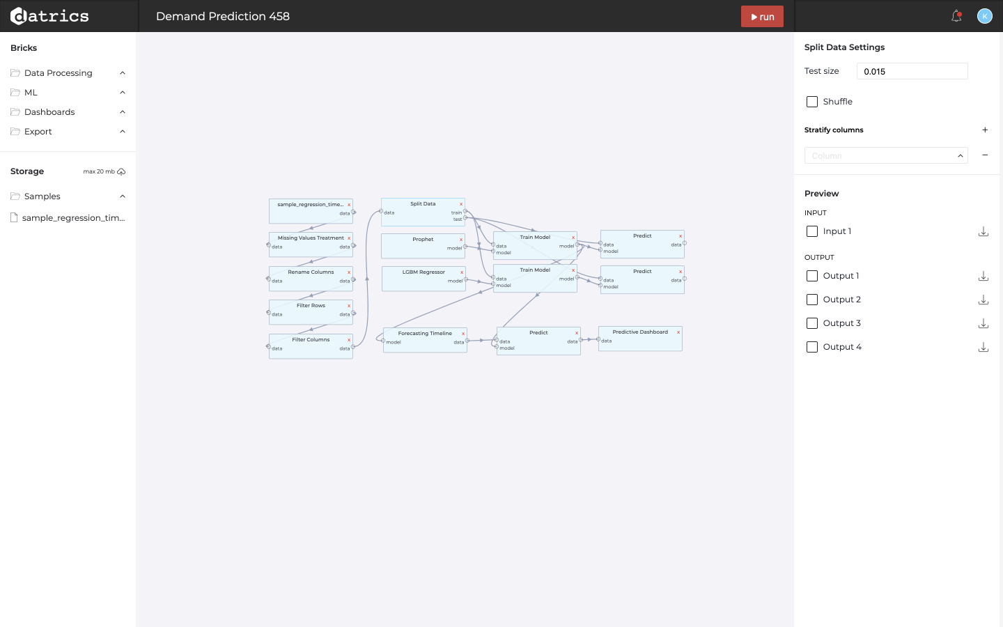 Enables machine learning for non-practitioners and automates MLOps for professionals within an enterprise. No prior learning needed, just upload your data to datrics.ai to do experiments, prototyping, and self-service analytics faster with template pipelines, create APIs, and forecasting dashboards in a couple of clicks.